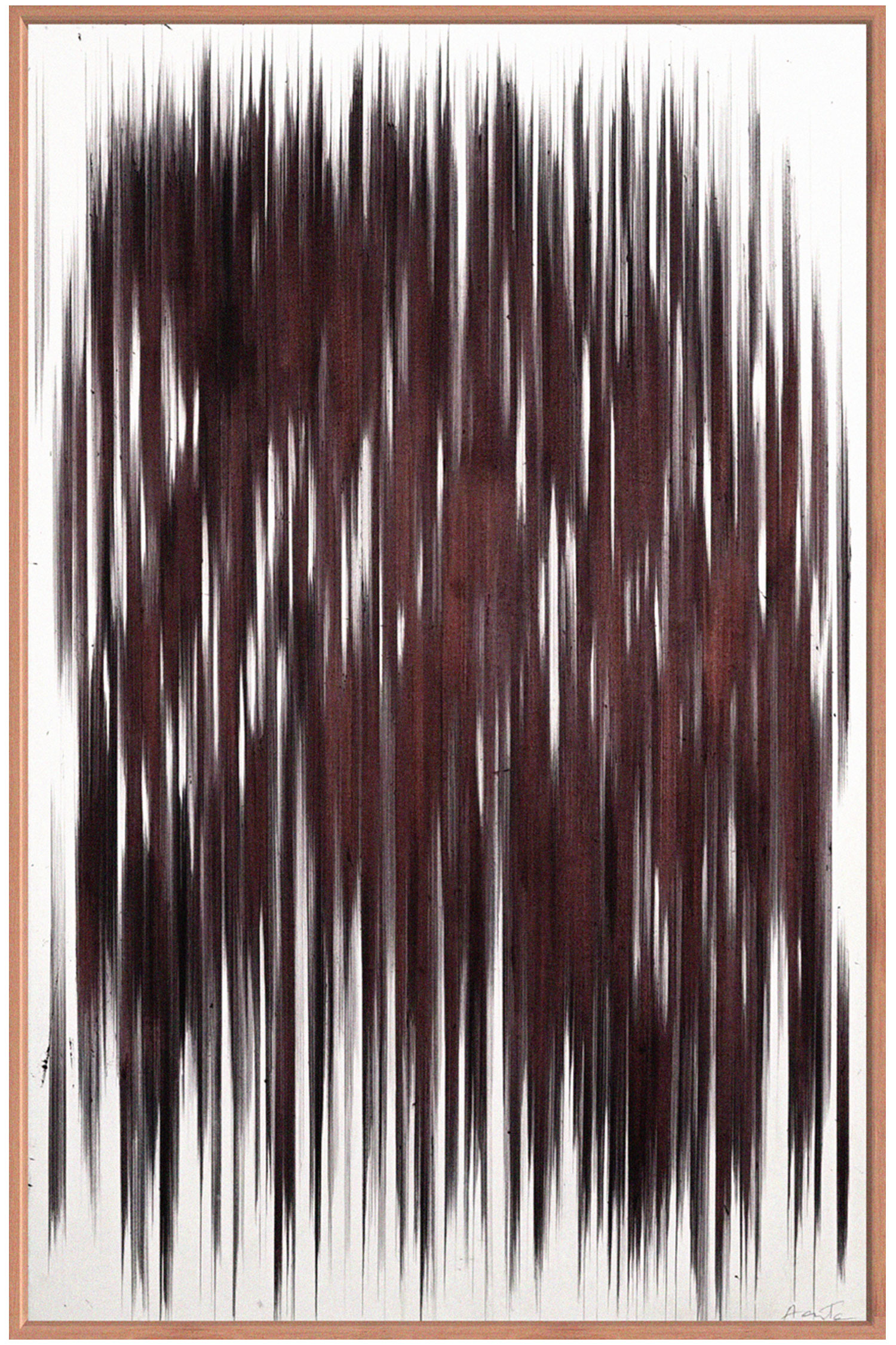 Through repetition and layering, the drawings achieve a kindof gravitational density, a pull that draws the viewer inward.The meticulous accumulation of lines creates an emotional andpsychological charge, evoking a tension between control andrelease, stillness and motion, form and formlessness.